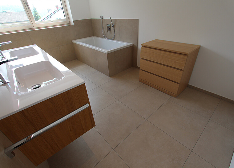 Wir arbeiten mit bester Qualität, modernsten Techniken und Standard. Fliesen finden sich nicht nur im Bad, sondern auch in Küche, Gang oder Schlafzimmer. Gerne setzen wir Ihre individuellen Gestaltungswünsche um – auch mit nachträglicher Fußbodenheizung, einfach steuerbar per App. Qualität aus einer Hand, mit Beratung.